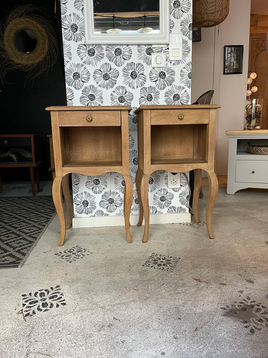 Duo paire tables de chevet vintage bois Zoé et Noé avec tiroirs