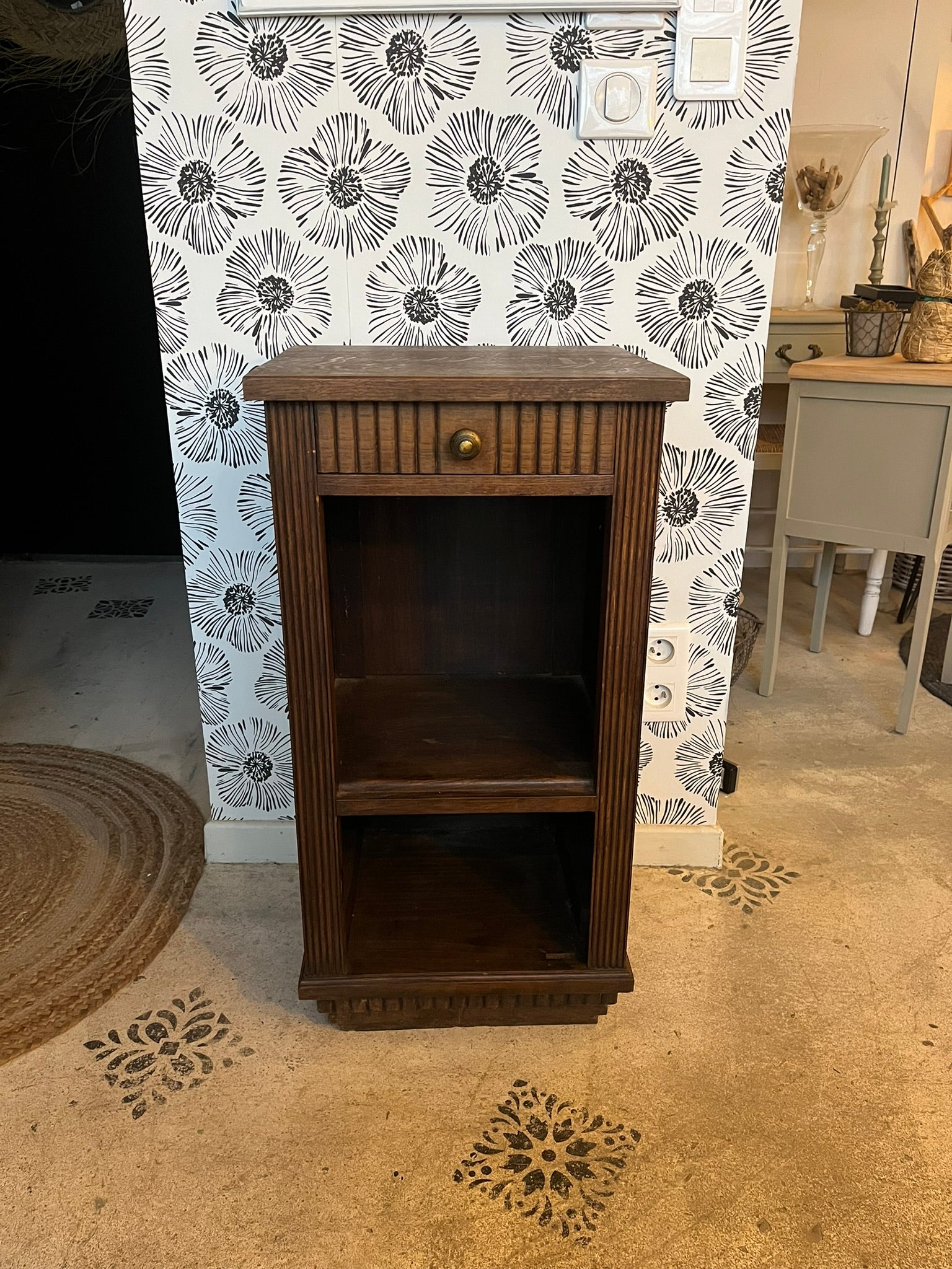Table de chevet meuble d'appoint vintage Aëla Art Déco bois massif
