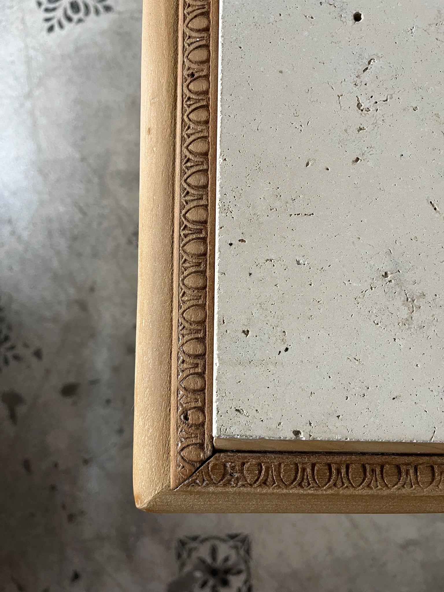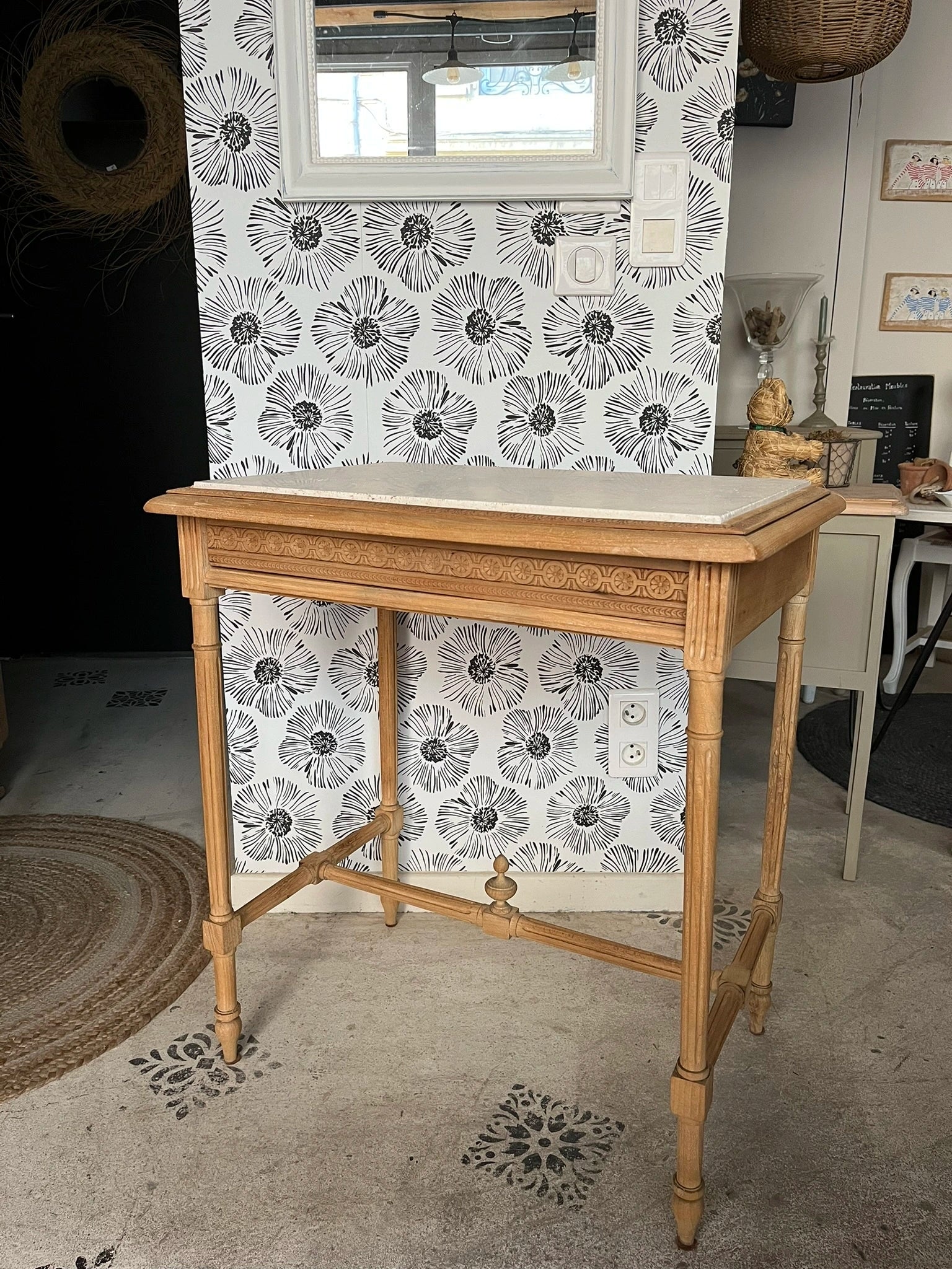 Console petit bureau vintage Calixte sculpté bois massif et marbre