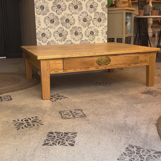 Table basse de ferme vintage Augusta bois massif avec tiroir